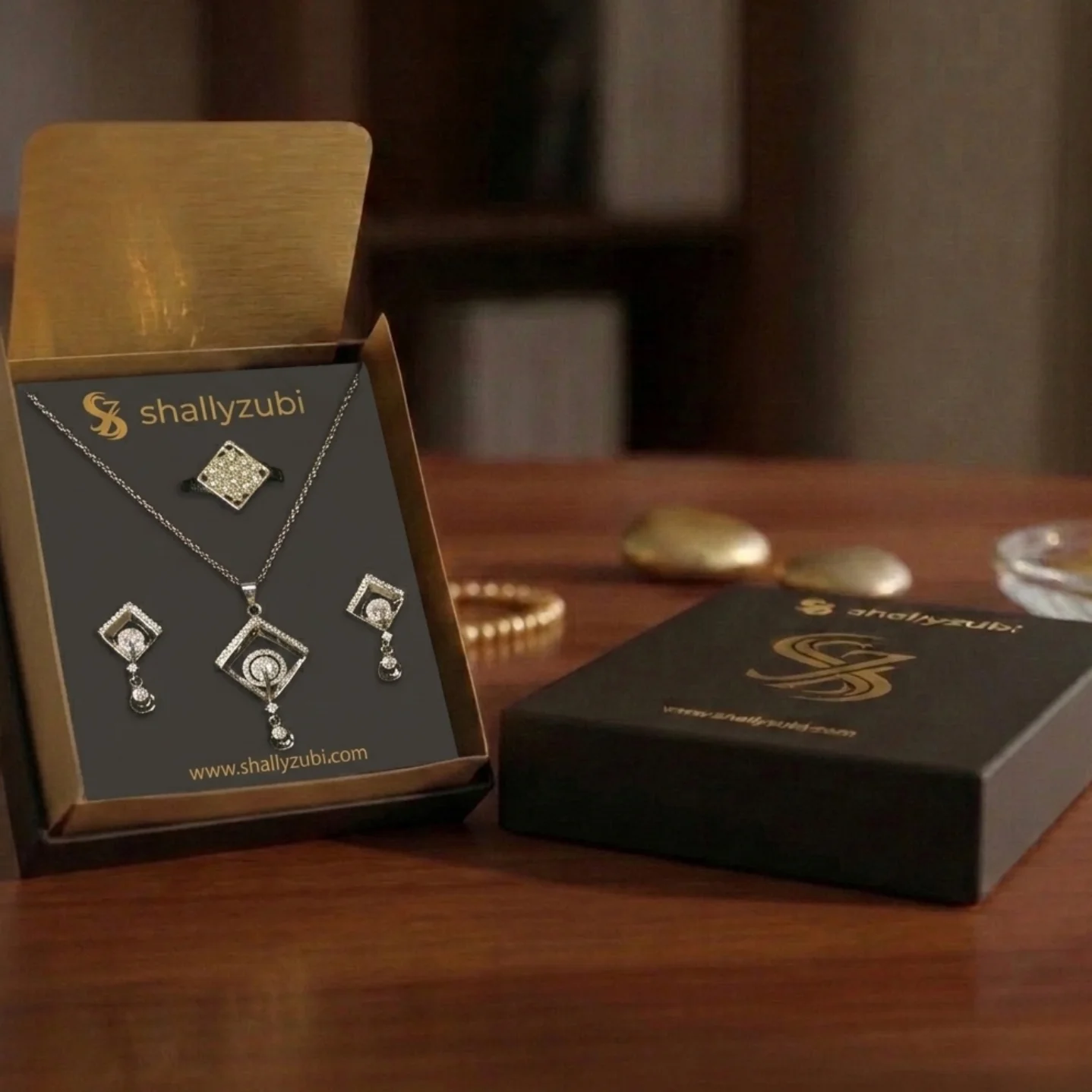 Silver White Cubic Zirconia Entwined Kite Shaped jewellery-locket-set| With-Jewelry-box